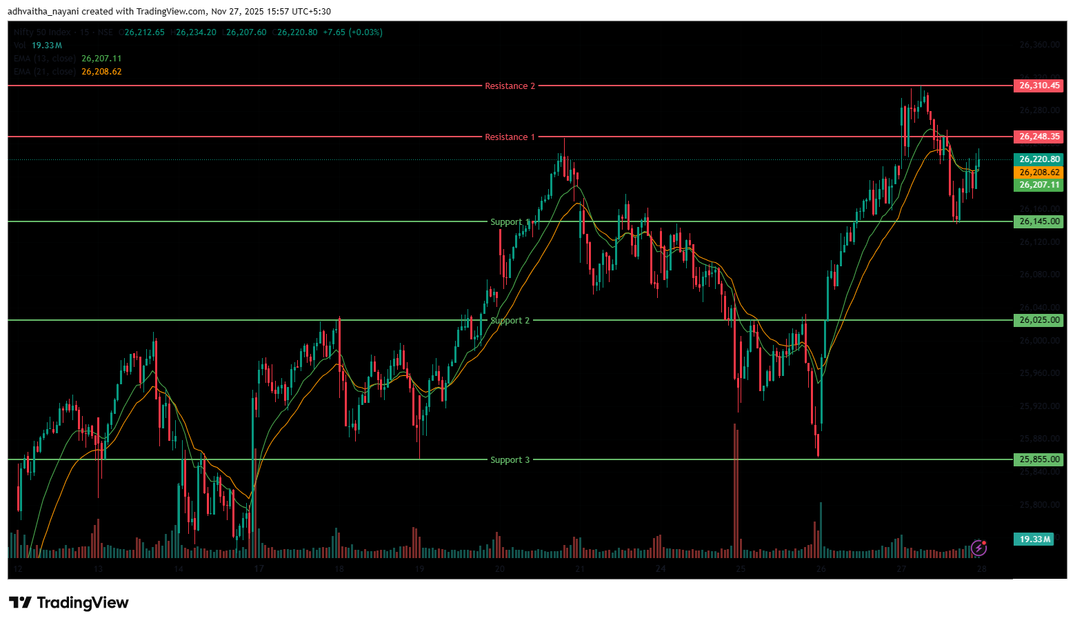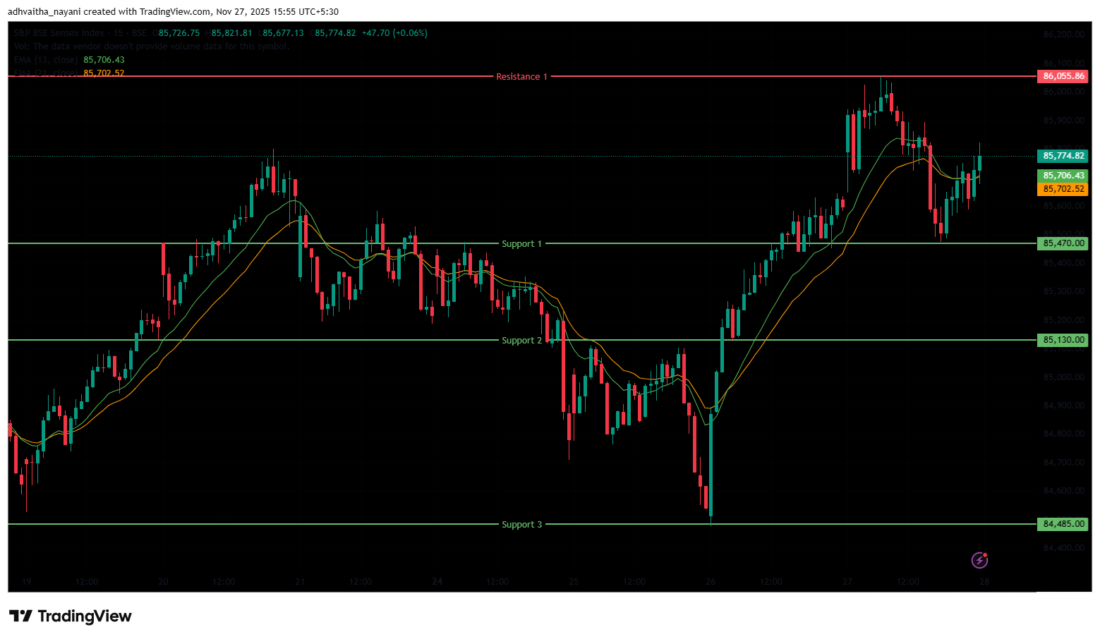SensexResistance 186,055.86Closing Price85,720.38Support 185,470.00Support 285,130.00Support 384,485.00Market Recap on November 27th, 2025