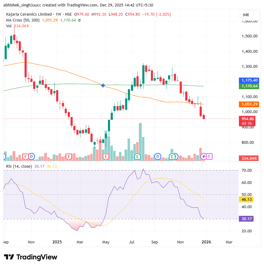 With a market capitalization of Rs. 15,206.52 crores on Monday, the stock closed at Rs 955.95 apiece, with an RSI of 30.11, indicating that it is in the oversold zone, offering the potential for an upside bounce.